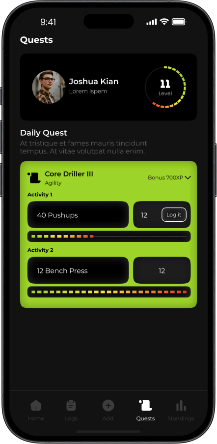 Enter your productive habits and workout routines, and watch yourself level up. This time, you’re the video game character as you complete quests to earn bonus XP and rewards.