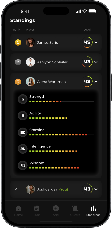 Your productive habits and workout routines are automatically translated to your corresponding attributes. Level them up and focus on the areas that you want to see the most self-improvement. Grind it out for yourself this time!